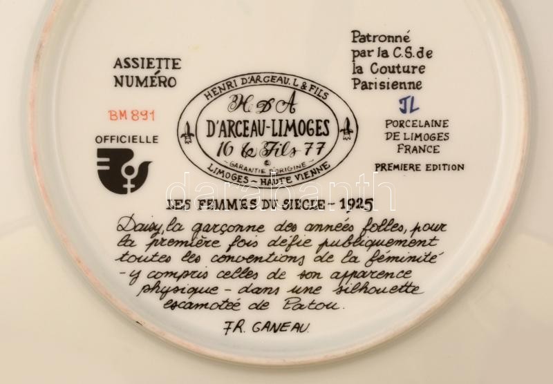 Limoges porcelán tányér, matricás, jelzett, kis kopásnyomokkal, d: 21,... https://www.darabanth.com/de/272-Fernauktion/272.0/Andere-Sammelgebiete/Porzellan~9/Limoges-porcelan-tanyer-matricas-jelzett-kis-kopasnyomokkal-d-21-5-cm~II1384697