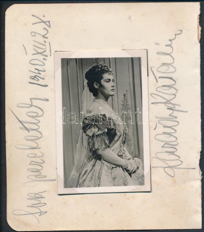 Beschreibung: 1940 Karády Katalin (1910-1990) aláírása őt magát ábrázoló fotón