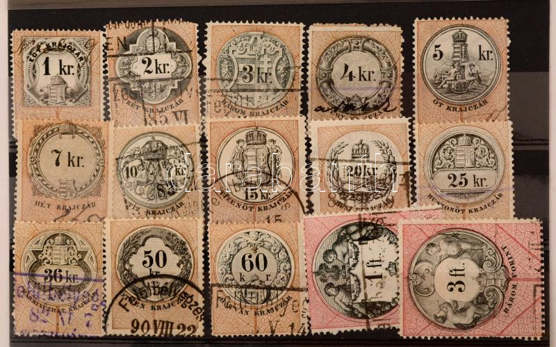 1880-1887 15 db vegyes okmánybélyeg https://www.darabanth.com/de/272-Fernauktion/272.0/Andere-Sammelgebiete/Stempelmarken~18/1880-1887-15-db-vegyes-okmanybelyeg~II1387042
