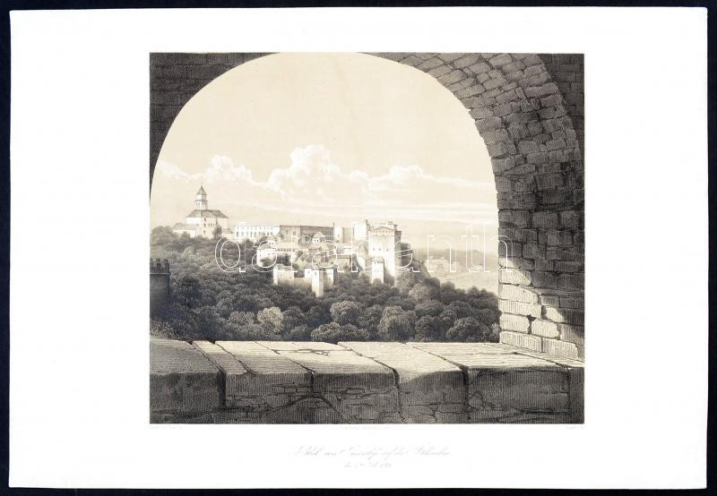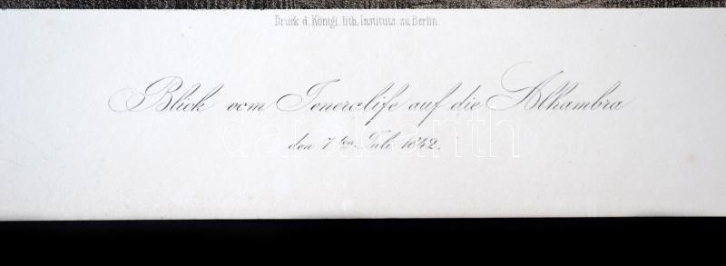 cca 1842 Blick vom Jeneralife auf die Alhambra den 7ten Juli 1842, litográfia, Königliche Lithographische Institut zu Berlin, 27×31,5 cm / cca 1842 Blick vom Jeneralife auf die Alhambra den 7ten Juli 1842, lithography, Königliche Lithographische Institut zu Berlin, 27×31,5 cm