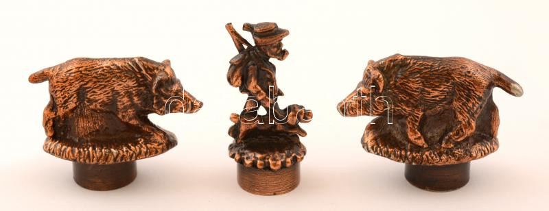 Beschreibung: 3 db vadászmotívumos réz sétapálca marokdísz, d: 2 cm