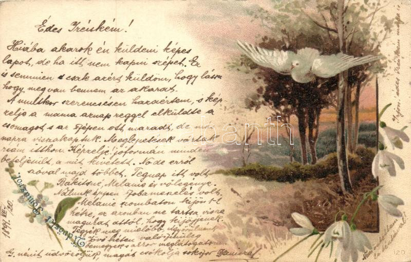 1899 Autumn forest, dove, flower, litho (EK) https://www.darabanth.com/de/272-Fernauktion/272.0/Ansichtskarten/GruC39Fkarten-Feste~200100/1899-Autumn-forest-dove-flower-litho-EK~II1329926