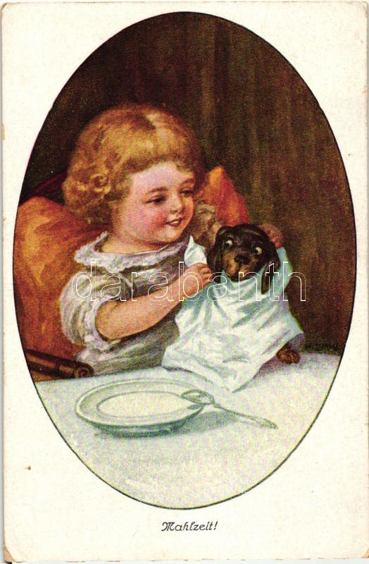 'Mahlzeit!' / 'Dinnertime!', Child with Dachshund ... https://www.darabanth.com/de/272-Fernauktion/272.0/Ansichtskarten/Hunde~200072/Mahlzeit-Dinnertime-Child-with-Dachshund-dog-EK~II1340099