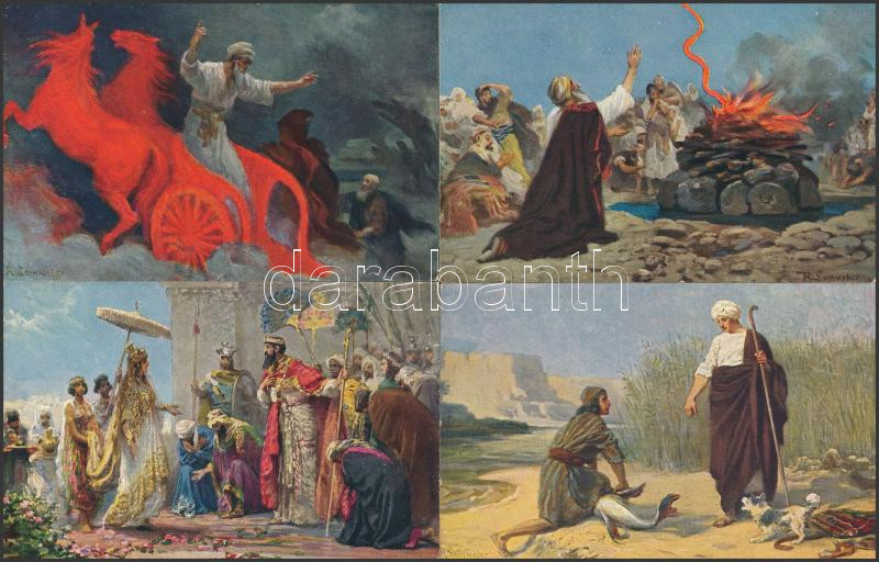 Altes Testament Serie V. Salomo und die Zeit des geteuilten Reiches; Die heilige Schrift in Bildern / series of 12 pre-1945 religious art postcards, Judaica, s: Robert Leinweber