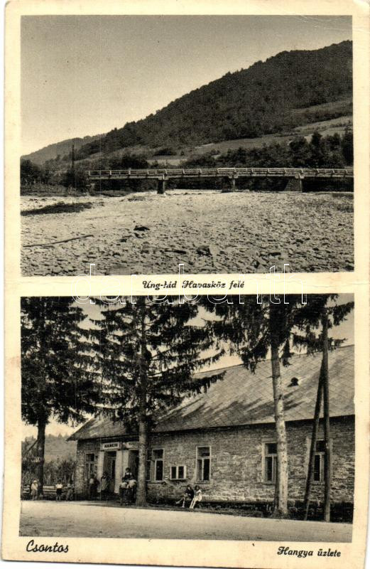 Csontos, Kosztrino; Ung híd Havasköz felé, Hangya üzlete / bridge, sho... https://www.darabanth.com/de/272-Fernauktion/272.0/Ansichtskarten/Karpatenukraine~200080/Csontos-Kosztrino-Ung-hid-Havaskoz-fele-Hangya-uzlete-bridge-shop-fa~II1384943