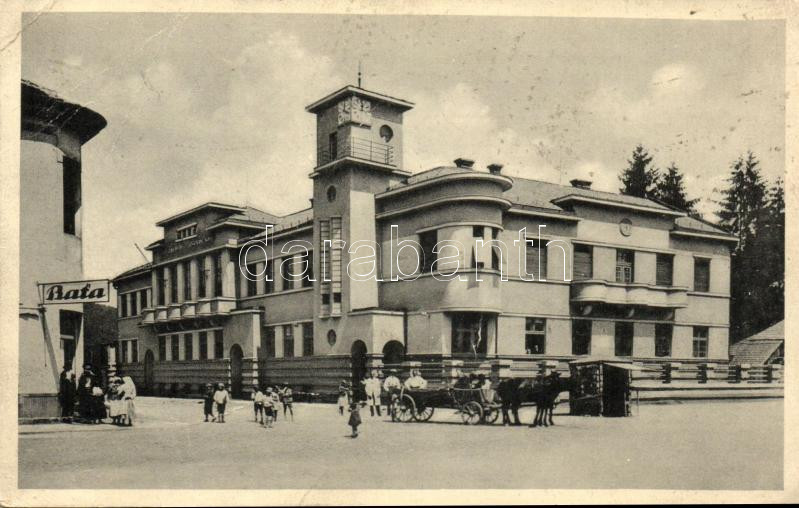 Szolyva, Svalová; Bata, Városháza, Toronyóra / shop, town hall, clock ... https://www.darabanth.com/de/272-Fernauktion/272.0/Ansichtskarten/Karpatenukraine~200080/Szolyva-Svalova-Bata-Varoshaza-Toronyora-shop-town-hall-clock-tower-fa~II1287369