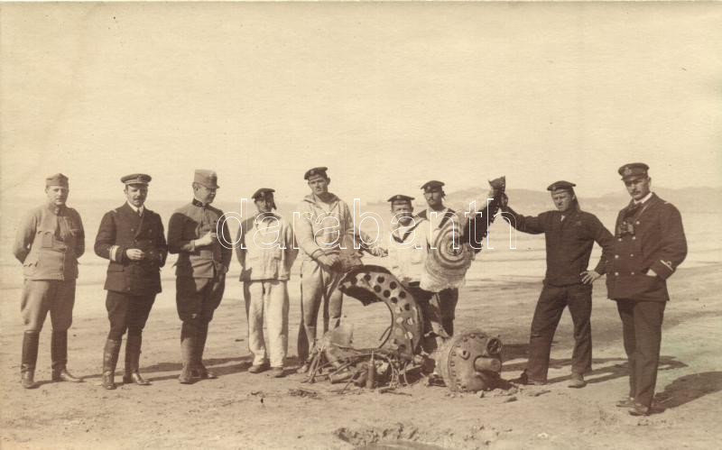 Beschreibung: K. u. K. haditengerészek, tisztek csoportképe, ronccsal / K. u. K. mariners, officers with wreck, group photo