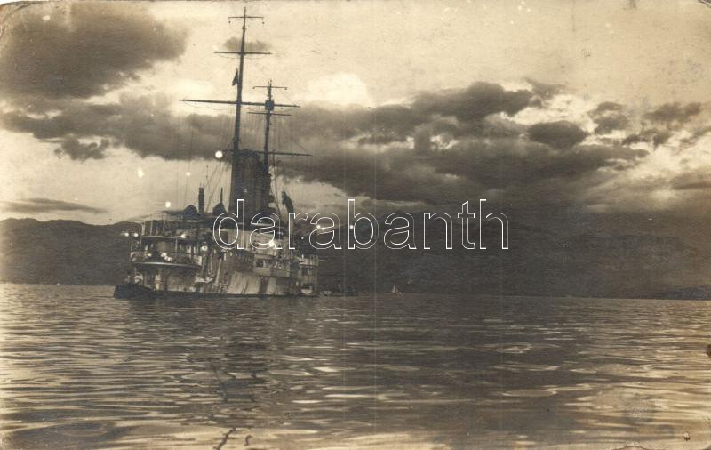 Beschreibung: SMS Sankt Georg, a K.u.K. haditengerészet páncélos cirkálója / Armored cruiser of the Austro-Hungarian Navy, photo (fa)