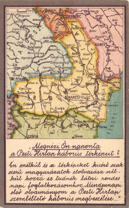 'Megnézi Ön naponta a Pesti Hírlap háborús térképeit?'; A ro... https://www.darabanth.com/de/272-Fernauktion/272.0/Ansichtskarten/Landkarte~200097/Megnezi-On-naponta-a-Pesti-Hirlap-haborus-terkepeit-A-romaniai-haboru-terkepe-kiadj~II1382075