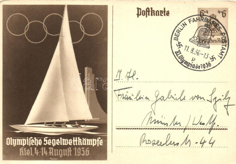 1936 Olympische Segelwettkämpfe, Kiel "Berlin Fahrbares Postamt X... https://www.darabanth.com/de/272-Fernauktion/272.0/Ansichtskarten/Olympische-Spiele~200086/1936-Olympische-Segelwettkampfe-Kiel-Berlin-Fahrbares-Postamt-XI-Olympiade-Olympic-Games-adve~II1388684
