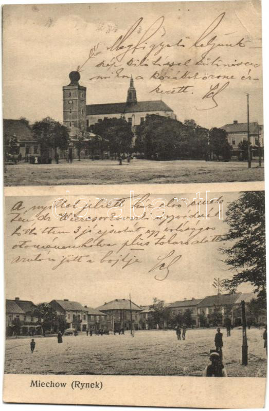 Miechów, Rynek / square, church (EB) https://www.darabanth.com/de/272-Fernauktion/272.0/Ansichtskarten/Polen~200023/Miechow-Rynek-square-church-EB~II1386807