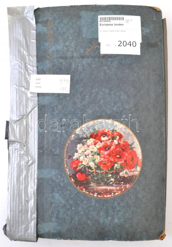 Nagy alakú képeslapalbum 123 oldallal összesen 984 férőhellyel, sérülésekkel / Big sized postcards album with 123 pages for 984 cards, with some damages (41 cm x 27 cm)