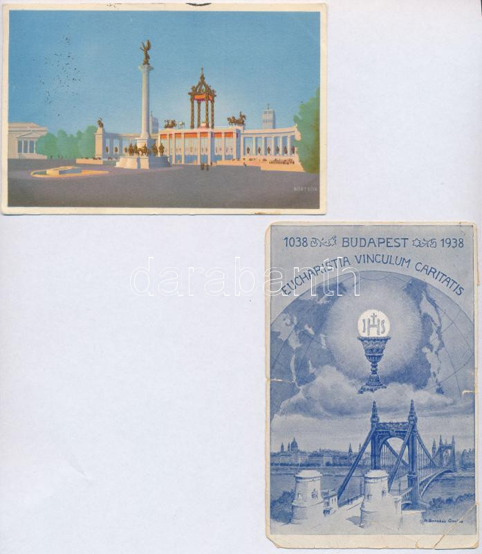 1938 Budapest XXXIV. Nemzetközi Eucharisztikus Kongresszus - 2 db képeslap / 34th International Eucharistic Congress - 2 postcards, s: R. Barabás Gizella, Börtsök