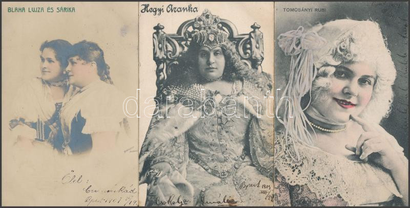 Blaha Lujza és Sárika, Hegyi Aranka, Tomcsányi Rusi - 3 db képeslap / ... https://www.darabanth.com/de/272-Fernauktion/272.0/Ansichtskarten/Schauspieler-Schauspielerin~200096/Blaha-Lujza-es-Sarika-Hegyi-Aranka-Tomcsanyi-Rusi--3-db-kepeslap-Hungarian-actresses--3-po~II1381305