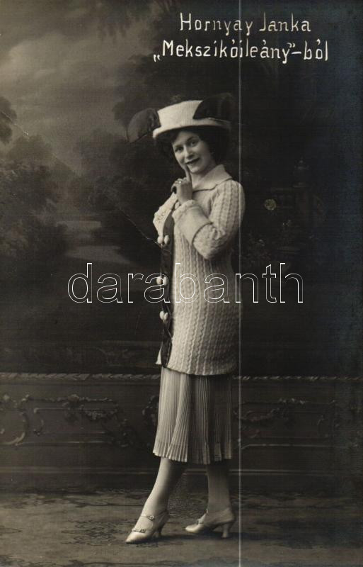Hornyay Janka a 'Mekszikóileány'-ból, Szamossy Ferenc fényké... https://www.darabanth.com/de/272-Fernauktion/272.0/Ansichtskarten/Schauspieler-Schauspielerin~200096/Hornyay-Janka-a-Mekszikoileany-bol-Szamossy-Ferenc-fenykepesz-fa~II1334584
