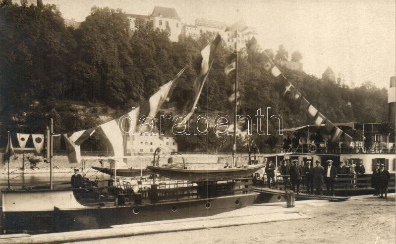 Hajókirándulás, zászlókkal feldíszített gőzhajók / Steamships decorate... https://www.darabanth.com/de/272-Fernauktion/272.0/Ansichtskarten/Schiffe~200059/Hajokirandulas-zaszlokkal-feldiszitett-gozhajok-Steamships-decorated-with-flags-photo~II1387443