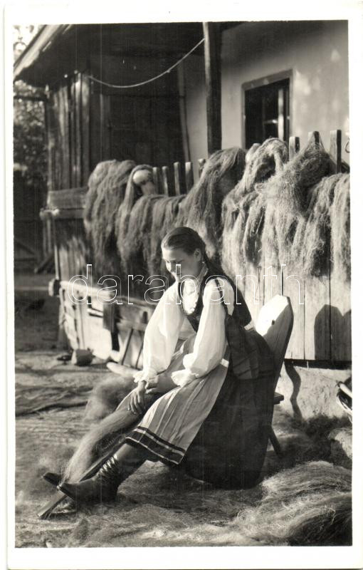 Csikfitód, Kender-fésülés / Transylvanian folklore, hemp combing https://www.darabanth.com/de/272-Fernauktion/272.0/Ansichtskarten/Siebenburgen~400314/Csikfitod-Kender-fesules-Transylvanian-folklore-hemp-combing~II1383156