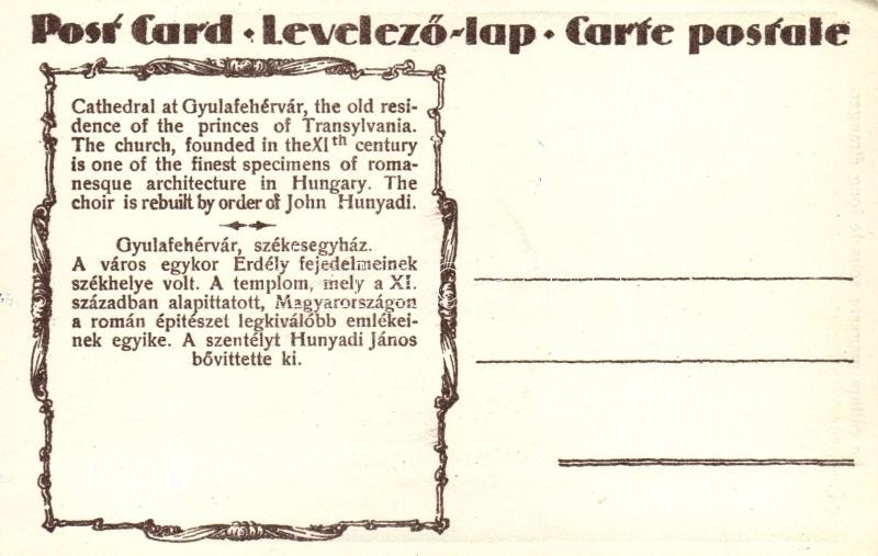 Gyulafehérvár, Székesegyház / 'La culture magyare sous le joug ét... https://www.darabanth.com/de/272-Fernauktion/272.0/Ansichtskarten/Siebenburgen~400314/Gyulafehervar-Szekesegyhaz-La-culture-magyare-sous-le-joug-etranger-Irredenta~II1328542