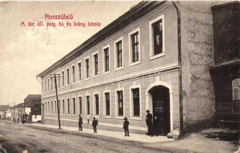 Beschreibung: Hosszúfalu, Satulung; Állami polgári fiú és leány iskola, W. L. Bp. 6094. / boy and girl school (EB)