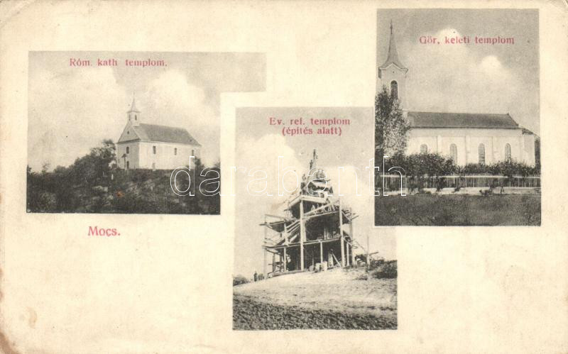 Mócs, Mociu; római katolikus, görögkeleti, épülő református templomok ... https://www.darabanth.com/de/272-Fernauktion/272.0/Ansichtskarten/Siebenburgen~400314/Mocs-Mociu-romai-katolikus-gorogkeleti-epulo-reformatus-templomok-churches-azott-sar~II1384715