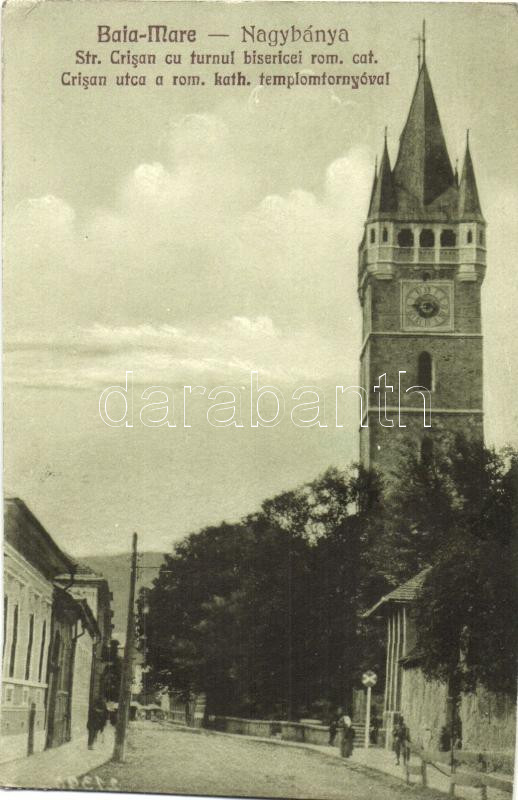 Nagybánya, Baia-Mare; Crisan utca, Római katolikus templomtorony / str... https://www.darabanth.com/de/272-Fernauktion/272.0/Ansichtskarten/Siebenburgen~400314/Nagybanya-Baia-Mare-Crisan-utca-Romai-katolikus-templomtorony-street-church-tower-EK~II1383172