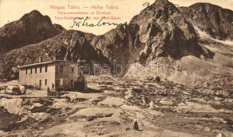 Tátra, Magas Tátra, Vysoké Tatry; Téry menedékház az Öt tónál, kiadja ... https://www.darabanth.com/de/272-Fernauktion/272.0/Ansichtskarten/Slowakei~400315/Tatra-Magas-Tatra-Vysoke-Tatry-Tery-menedekhaz-az-Ot-tonal-kiadja-Kuszmann-Gyula-Ter~II1383794