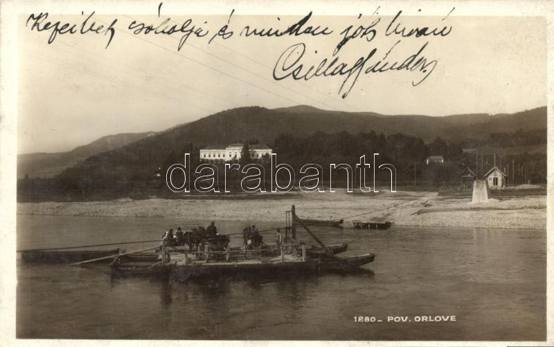 Vágzsigmondháza, Povazské Orlové; Látkép a várral, uszály / view with ... https://www.darabanth.com/de/272-Fernauktion/272.0/Ansichtskarten/Slowakei~400315/Vagzsigmondhaza-Povazske-Orlove-Latkep-a-varral-uszaly-view-with-barge~II1254702