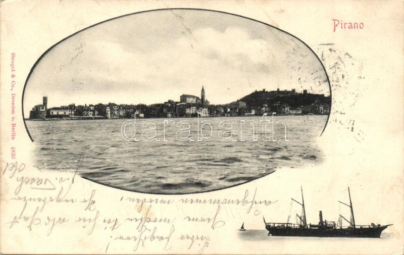 Piran, Pirano; General view from the sea, ship https://www.darabanth.com/de/272-Fernauktion/272.0/Ansichtskarten/Slowenien~200044/Piran-Pirano-General-view-from-the-sea-ship~II1385175