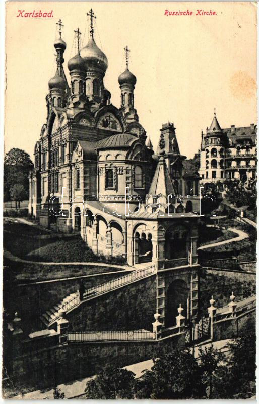 Karlovy Vary, Karlsbad; Russische Kirche / Russian church (EK) https://www.darabanth.com/de/272-Fernauktion/272.0/Ansichtskarten/Tschechische-Republik~200010/Karlovy-Vary-Karlsbad-Russische-Kirche-Russian-church-EK~II1381141
