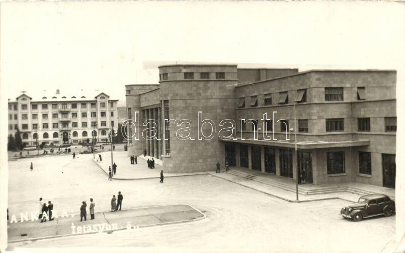 Ankara, Angora; Istasyon / railway station, automobile, photo (EB) https://www.darabanth.com/de/272-Fernauktion/272.0/Ansichtskarten/Turkei~200045/Ankara-Angora-Istasyon-railway-station-automobile-photo-EB~II1386559