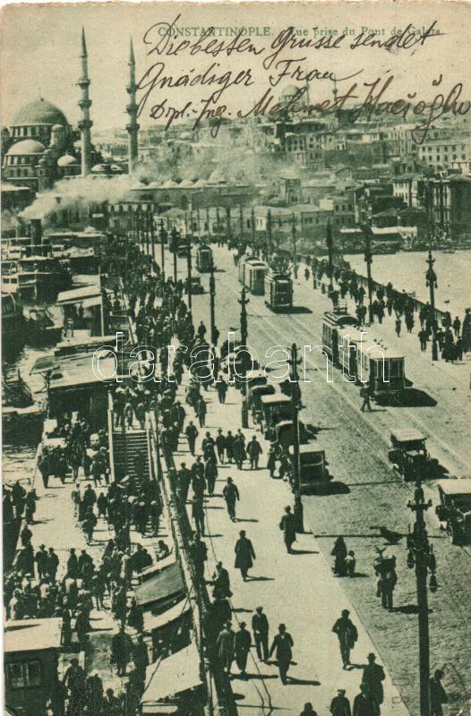 Constantinople, Vue prise du Pont de Galata / bridge trams (EK) https://www.darabanth.com/de/272-Fernauktion/272.0/Ansichtskarten/Turkei~200045/Constantinople-Vue-prise-du-Pont-de-Galata-bridge-trams-EK~II1386509