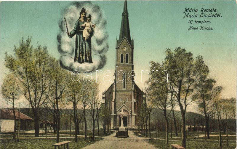 Budapest II. Máriaremete, Új templom, kiadja Schwarz Jakab (Rb) https://www.darabanth.com/de/272-Fernauktion/272.0/Ansichtskarten/Ungarn~200075/Budapest-II-Mariaremete-Uj-templom-kiadja-Schwarz-Jakab-Rb~II1335870