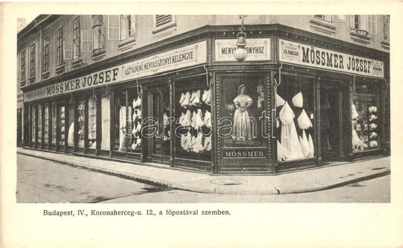 Beschreibung: Budapest V. Koronaherceg utca 12. főpostával szemben, Mössmer József Menyasszonyhoz üzlete