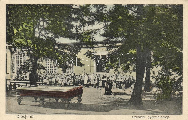 Diósjenő, Szünidei gyermektelep, biliárd asztal (?) https://www.darabanth.com/de/272-Fernauktion/272.0/Ansichtskarten/Ungarn~200075/Diosjeno-Szunidei-gyermektelep-biliard-asztal-~II1387406