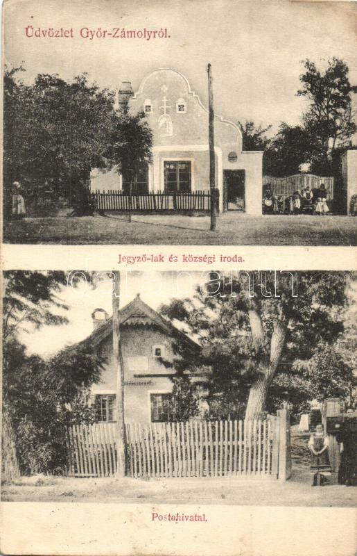Győrzámoly, Jegyzői lak, Községi iroda, Postahivatal, kiadja Deutsch H... https://www.darabanth.com/de/272-Fernauktion/272.0/Ansichtskarten/Ungarn~200075/Gyorzamoly-Jegyzoi-lak-Kozsegi-iroda-Postahivatal-kiadja-Deutsch-Henrik~II1387468
