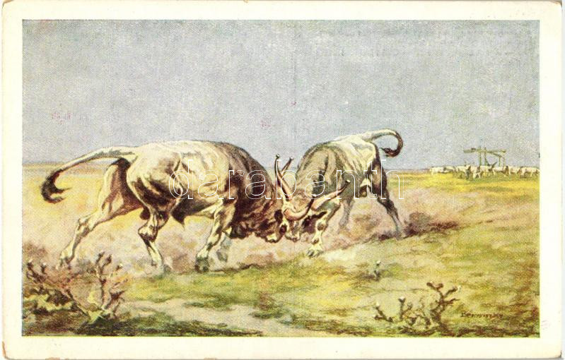 Hortobágy, párbaj a pusztán, ökrök s: Benyovszky https://www.darabanth.com/de/272-Fernauktion/272.0/Ansichtskarten/Ungarn~200075/Hortobagy-parbaj-a-pusztan-okrok-s-Benyovszky~II1314981