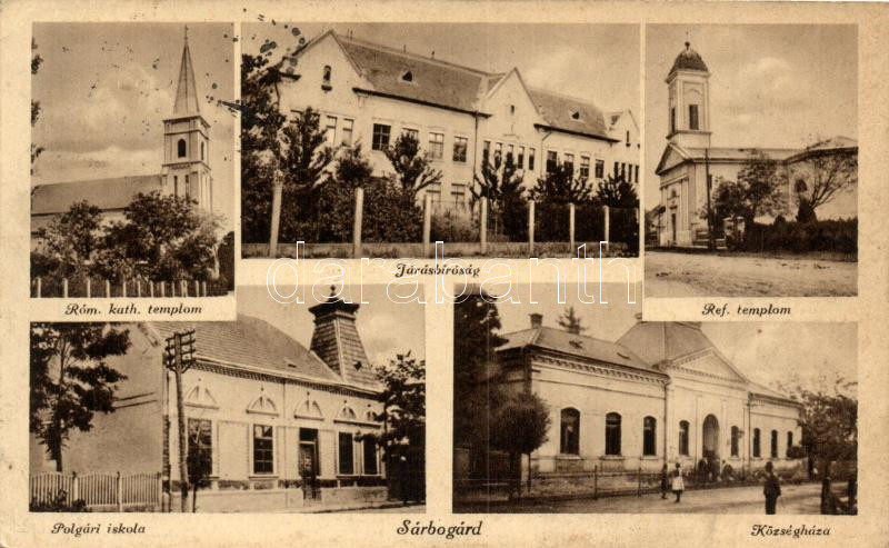 Sárbogárd, Járásbíróság, községháza, polgári iskola, templomok https://www.darabanth.com/de/272-Fernauktion/272.0/Ansichtskarten/Ungarn~200075/Sarbogard-Jarasbirosag-kozseghaza-polgari-iskola-templomok~II1382234