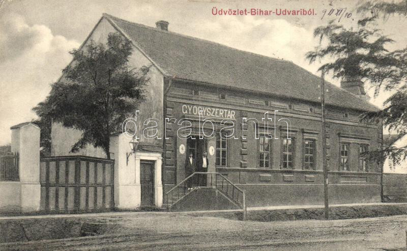 Sárrétudvari, Biharudvari; gyógyszertár, Dékány fényképész felvétele https://www.darabanth.com/de/272-Fernauktion/272.0/Ansichtskarten/Ungarn~200075/Sarretudvari-Biharudvari-gyogyszertar-Dekany-fenykepesz-felvetele~II1387347