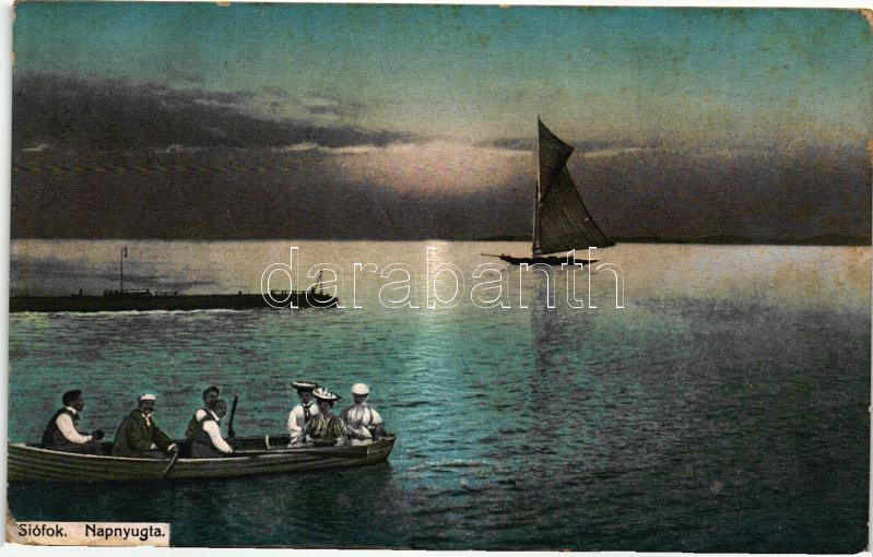 Siófok, Napnyugta, vitorlás, csónakázók, kiadja Adolf Sámuel (EK) https://www.darabanth.com/de/272-Fernauktion/272.0/Ansichtskarten/Ungarn~200075/Siofok-Napnyugta-vitorlas-csonakazok-kiadja-Adolf-Samuel-EK~II1382128
