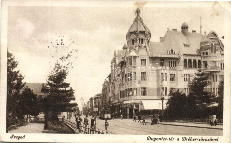 Szeged, Dugonics tér, Dréher söröző, villamos (EK) https://www.darabanth.com/de/272-Fernauktion/272.0/Ansichtskarten/Ungarn~200075/Szeged-Dugonics-ter-Dreher-sorozo-villamos-EK~II1381933