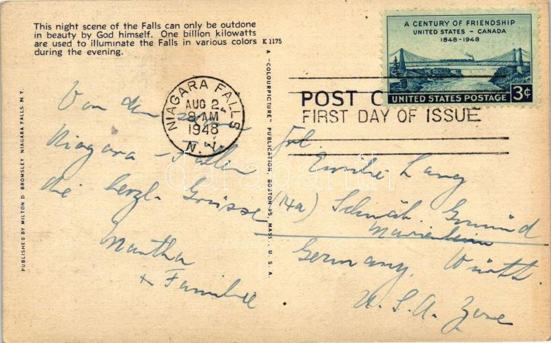 1948 Niagara Falls, Horseshoe Falls at Night, So. Stpl. https://www.darabanth.com/de/272-Fernauktion/272.0/Ansichtskarten/Vereinigte-Staaten-von-Amerika~200002/1948-Niagara-Falls-Horseshoe-Falls-at-Night-So-Stpl~II1331999