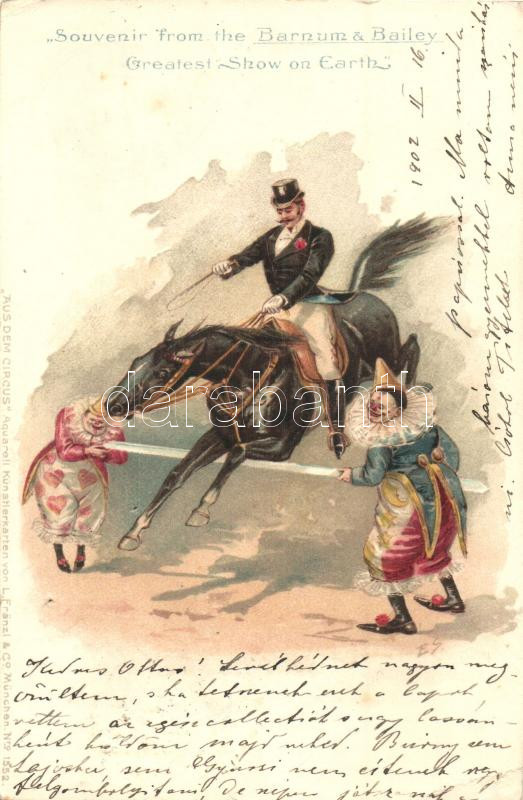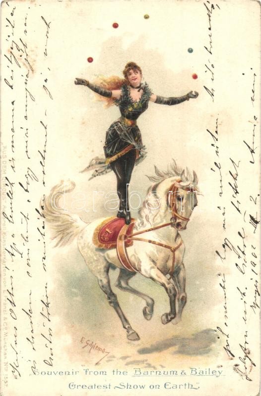 Barnum & Bailey circus advertisement, 'Aus dem Circus' A... https://www.darabanth.com/de/272-Fernauktion/272.0/Ansichtskarten/Zirkus~200051/Barnum-Bailey-circus-advertisement-Aus-dem-Circus-Aquarell-Kunstlerkarten-von-L-Franzl--3-po~II1383974