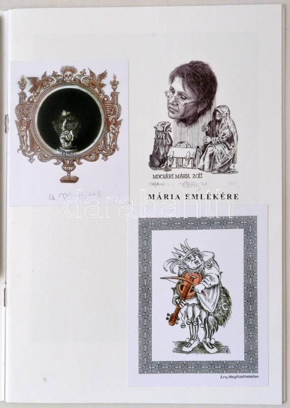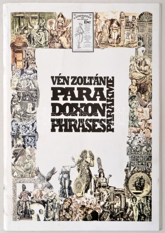 Vén Zoltán(1941-): grafikusművész kiállÃtási katalógusai és egyéb ajánlói. Vén Zoltán: Paradoxon, Phrases, Parakme. Budapest, é.n. [cca 2011], SzerzÅ‘i kiadás, 24 p. Tűzött papÃrkötés. Mocsári Mária (1953-2011) iparművész emlékének ajánlva, valamint beragasztott, az emlékkiállÃtására szóló meghÃvóval. Nyomtatott és beragasztott képekkel. Néhány beragasztott képen Vén Zoltán aláÃrásával. Vén Zoltán grafikusművész kiállÃtása. Pápa, 2007, Jókai Mór Városi Könyvtár, 19 p. Tűzött papÃrkötés. Vén Zoltán kiállÃtási meghÃvó. Budapest, é.n., Kispesti Vigadó Galéria. + 2 két nyomtatott ajánlóval.