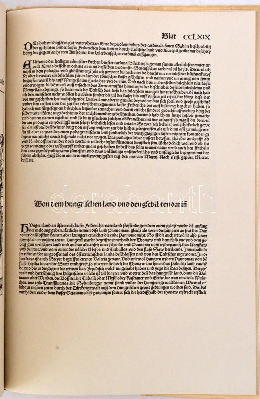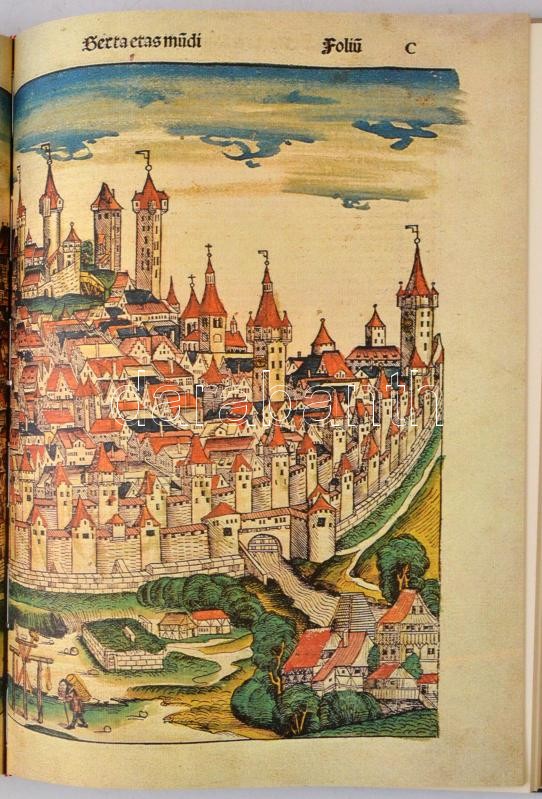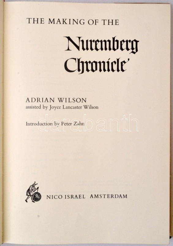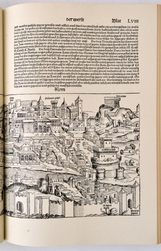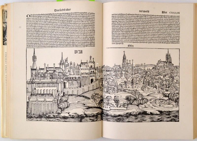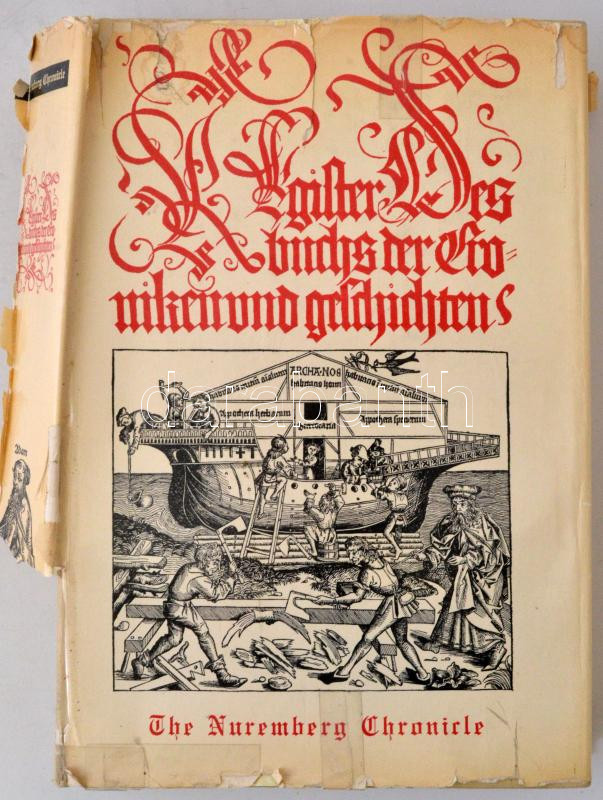 A Nürnbergi Krónika reprint kiadása, valamint A Nürnbergi Krónika készítése, 2 db: The Nuremberg Chronicle. - Register Des buchs der Croniken und geschichten, mit figuren und pildnüssen von anbeginn der welt bis auf dise unnsere Zeit. New York, 1966, Brussel&Brussel. Kiadói egészvászon kötés, kiadói papírborítóban. A papírborítója megviselt, szakadozott. Ezt leszámítva jó állapotban van. Nürnbergi Krónika vagy Schedel Krónika reprint kiadása. Adrian Wilson-Joyce Lancaster Wilson: The making of the Nuremberg Chronicle. (A Nürnbergi Krónika készítése.) Peter Zahn bevezetőjével. Amsterdam, 1976, Nico Israel, 252 p. Kiadói egészvászon kiadói papírkötésben. Képanyaggal gazdagon illusztrálva. Hartmann Schedel (1440-1514) krónikáját (Liber Chronicarum) 1493-ban adta ki Anton Koeberger Nürnbergben. A kor nyomdászatának remekműve, amihez az eredeti fametszeteket neves művészek Michael Wolgemut (1434-1519), Wilhelm Pleydenwurff (1462-1494) készítették. De talán a készítésben részt vet maga a fiatal Albrecht Dürer (1471-1528) is, akinek Koeberger a keresztapja, Wolgemut meg a mestere volt. E nyomdászati műremeket és készítését ismerheti meg a könyvekből. / Two books about the Nuremberg Chronicle: The Nuremberg Chronicle. Reprint edition. Linen-binding in paper cover, but the cover is damaged. The making of the Nuremberg Chronicle by Adrian Wilson and Joyce Lancaster Wilson. The introduction by Peter Zahn. Linen-binding in paper cover, in english language, with a lot of illustrations. The croncicle of Harmann Schedel (1440-1514) (Liber Chronicarum) edited in Nuremberg by Anton Koeberger. This book is the fine piece of work of the typography of the age. The woodcut engravings made by Michael Wolgemut (1434-1519), Wilhelm Pleydenwurff (1462-1494). But maybe the young Albrecht Dürer (1471-1528) made some of them too. Koeberger was the grandfather of the Dürer, Wolgemut was the master of him. You know this typography of work of art and the making from these books.