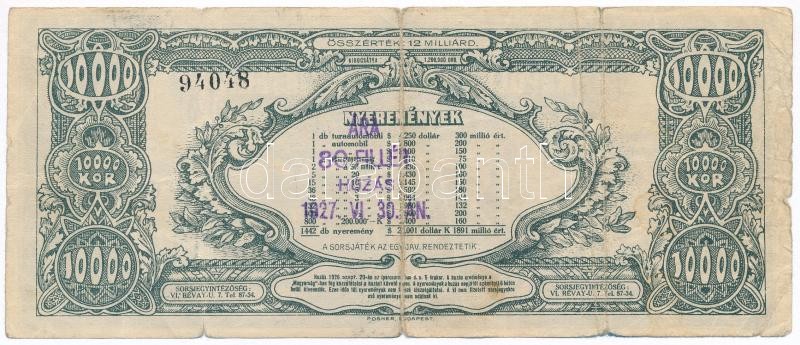 Beschreibung: 1926. "Magyar Sportrepülők Egyesülete - Repülők Tárgysorsjátéka - Dollár Sorsjegy" B sorozat, felülbélyegzéssel T:III,III-