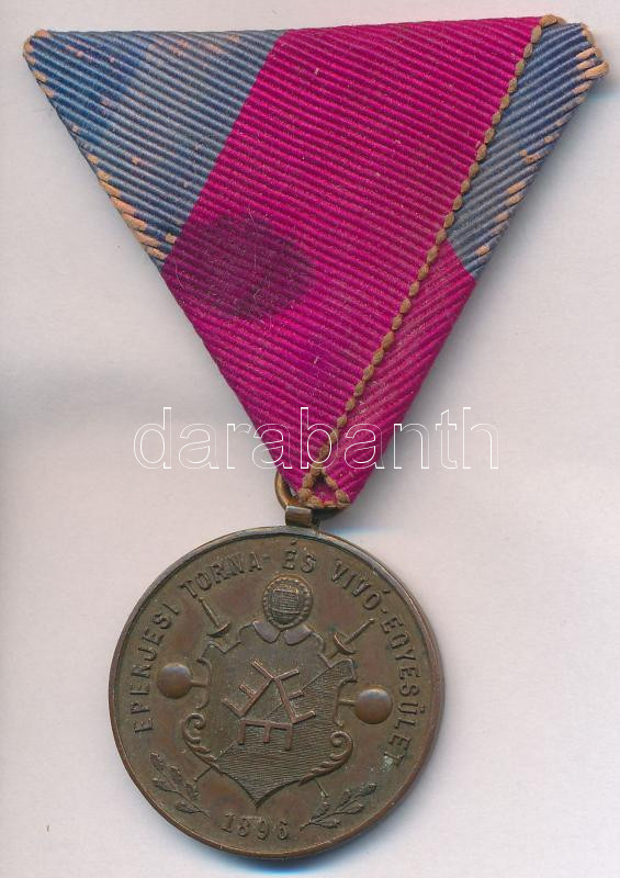 ~1900. "Eperjesi Torna- és Vívó Egyesület 1896" Br díjérem m... https://www.darabanth.com/de/272-Fernauktion/272.0/Numismatik/Faleristik-Auszeichnungen-Medaillen-Ordnen~300017/7E1900-Eperjesi-Torna-es-Vivo-Egyesulet-1896-Br-dijerem-mellszalaggal-29mm-T2~II1388724