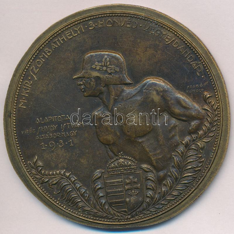 1931. "Magyar Királyi Szombathelyi 3. Honvéd Vegyes Dandár - alapította Vitéz Shvoy István altábornagy" Br emlékérem. Szign.: Szabó Károly (40mm) T:2 ü.