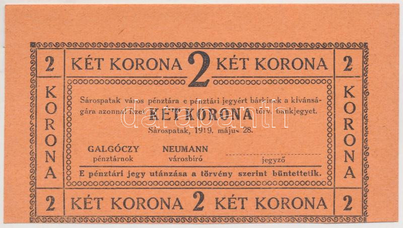 Adamo SÁR-3.2 https://www.darabanth.com/de/272-Fernauktion/272.0/Numismatik/Notgelden~300006/Sarospatak-1919-2K-TI---Adamo-SAR-32~II1387152