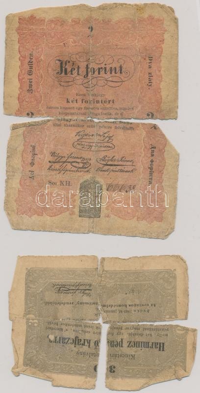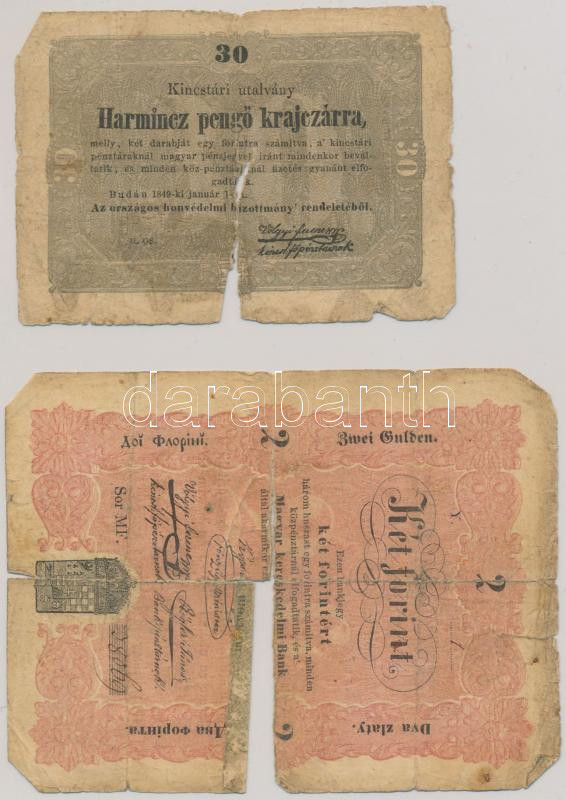 1848. 2Ft (3x) + 1849. 30kr (3x) "Kossuth bankó" T:IV,V https://www.darabanth.com/de/272-Fernauktion/272.0/Numismatik/Ungarische-Banknoten~300007/1848-2Ft-3x-plus-1849-30kr-3x-Kossuth-banko-TIV-V~II1381319