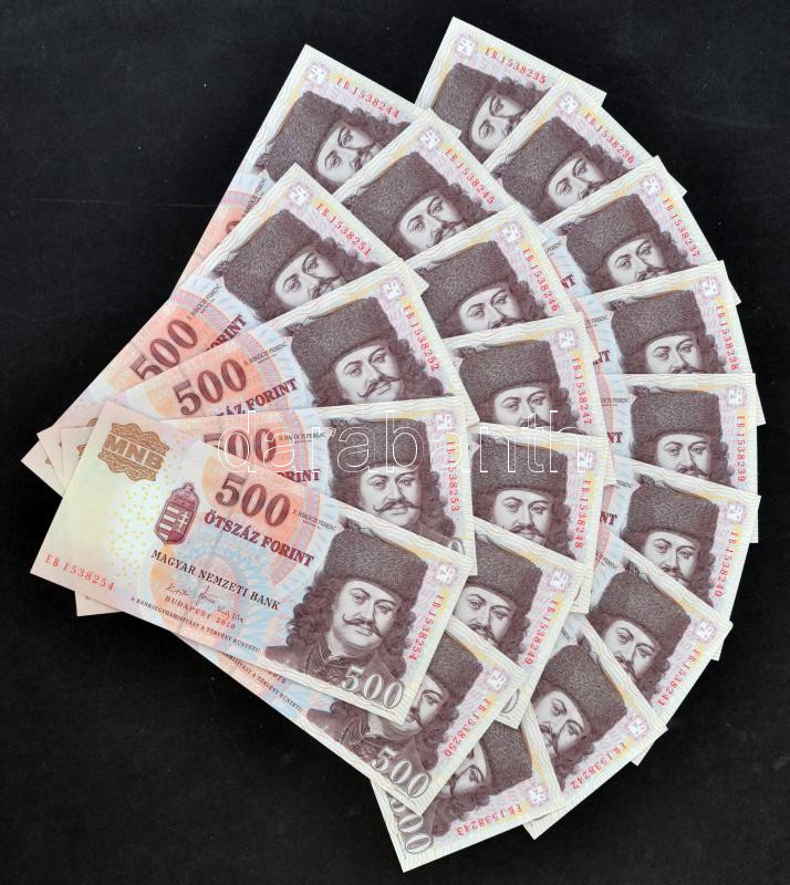 Hungary 2010. 500 Forints (20x) ... https://www.darabanth.com/de/272-Fernauktion/272.0/Numismatik/Ungarische-Banknoten~300007/2010-500Ft-20x-sorszamkovetok-TI--Hungary-2010-500-Forints-20x-sequential-serials-CUNC~II1385344